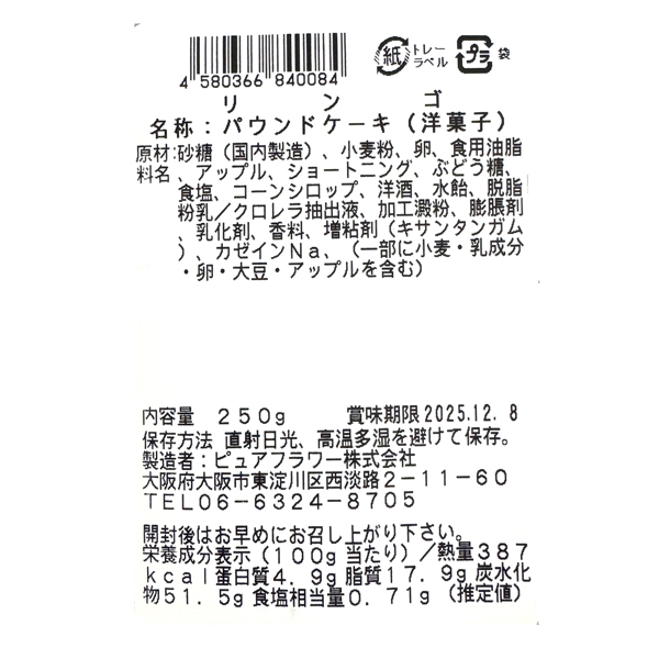 APPLE POUND CAKE ( PURE FLOUR Co.ltd. )