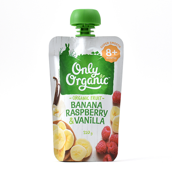 ONLY ORGANIC POUCH BANANA RASPBERRY & VANILLA 8 MONTHS +