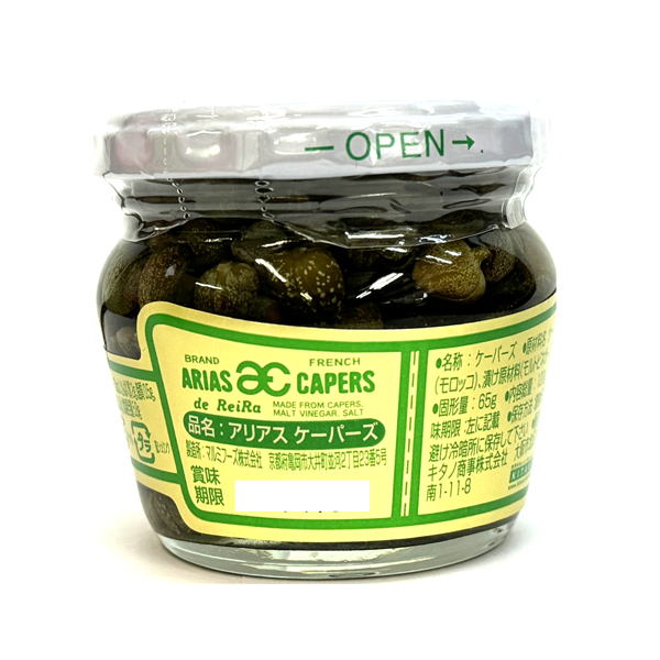 地中海の豊かな風土が育んだアリアスのケーパーズは、その爽やかな酸味と独特の食感が特徴です。スモークサーモンや肉料理、サラダのアクセントに最適で、いつものお料理を洗練された味わいに格上げいたします。サラダ、ピザ、 タルタルソース、前菜からパスタ、煮込み料理まで様々なお料理に奥行きとアクセントに。