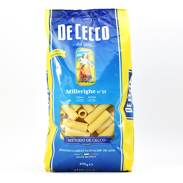 表面に「千本の線(ミッレリーゲ)」のような細かい筋が入った、ショートパスタの一種です。この細かい溝がソースをよく絡め、特に肉系のソースや肉の煮込みソース、ソーセージ、きのこやナスなどの野菜ソースと相性が良いのが特徴のパスタです。