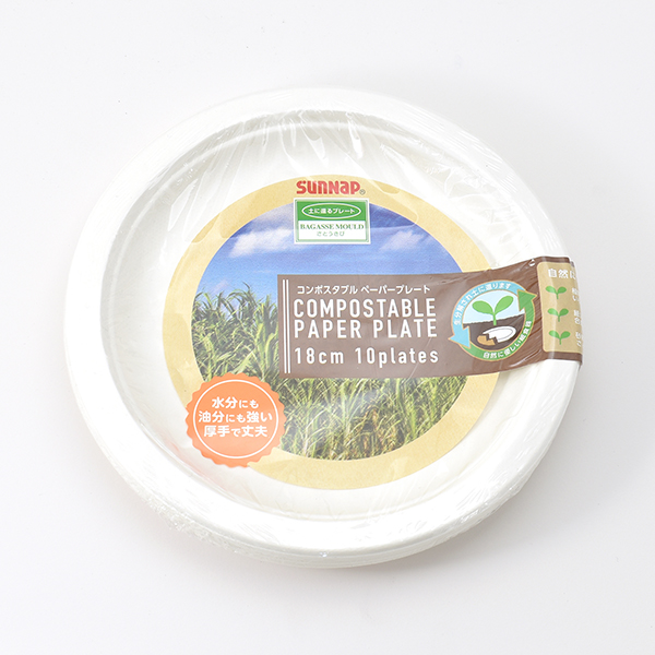 コンポスタブルペーパープレート(さとうきびパルプ100%)18cm