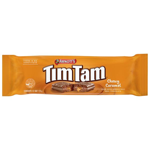 オーストラリアの国民的ビスケット、ティムタムの中でも特に人気の高いチューイーカラメル味です。