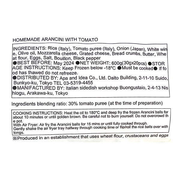 NATIONAL AZABU HOMEMADE ARANCINI WITH TOMATO ( FROZEN )