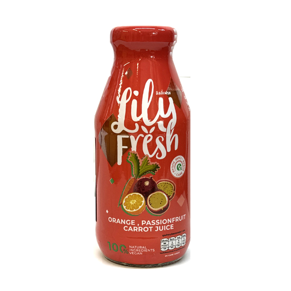 Ingredients: Fruits (orange, passion fruit), carrot, (some contain orange)