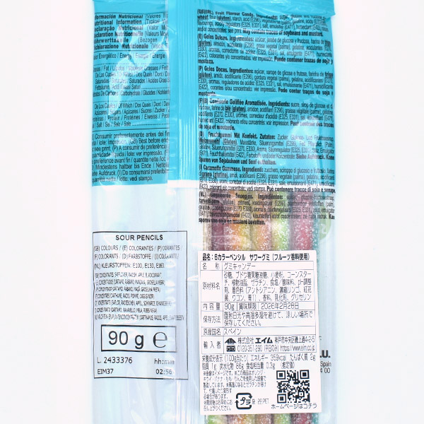 原材料:砂糖、ぶどう糖果糖液糖、小麦粉、コーンスターチ、植物油脂、ゼラチン、食塩/酸味料、