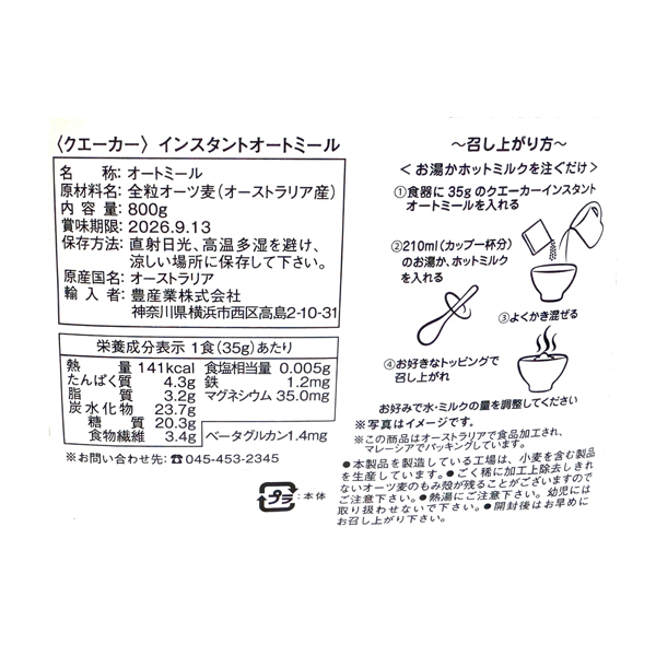原材料:全粒オーツ麦(オーストラリア産)