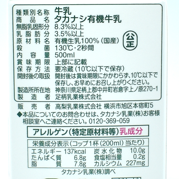 高梨 有機牛乳