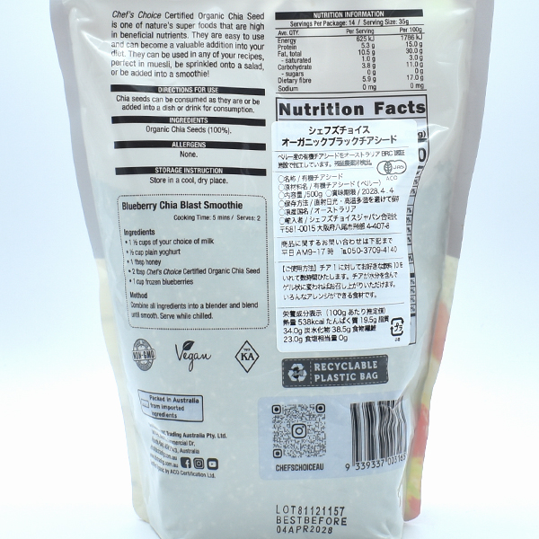 CHEF’S CHOICE ORGANIC BLACK CHIA SEED 500G