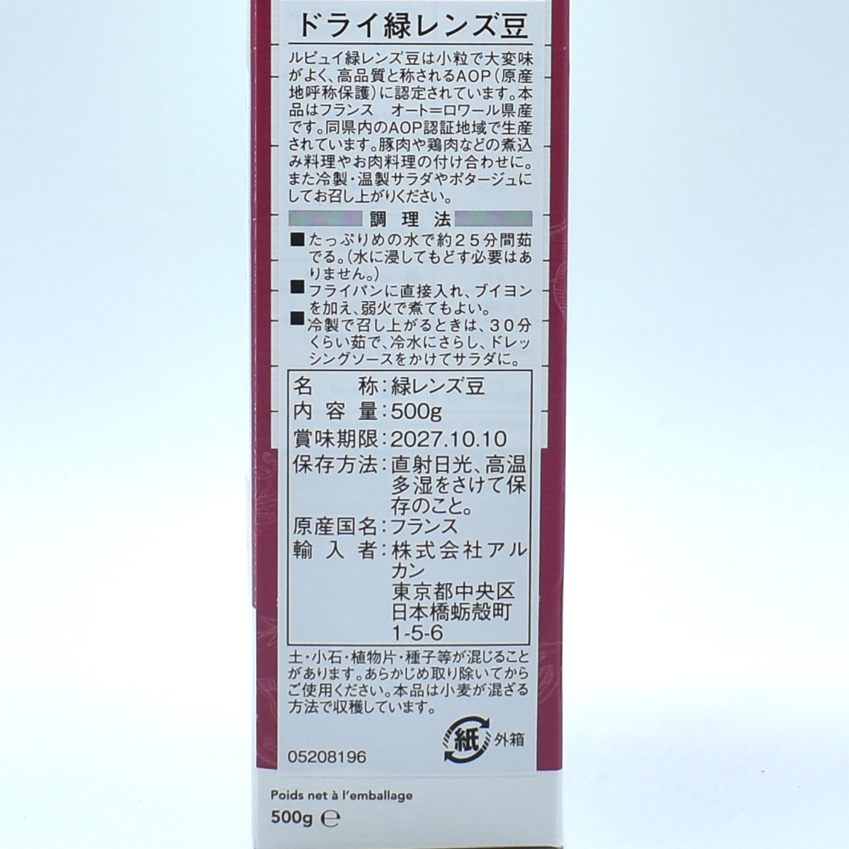 フランス・オーヴェルニュ地方で伝統的に栽培される「ル・ピュイ産緑レンズ豆」です。